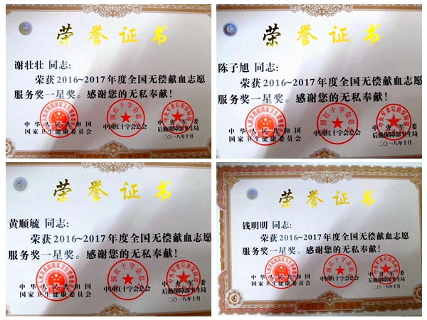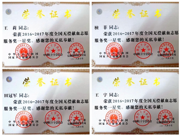 据悉,全国无偿献血志愿服务奖,是根据《全国无偿献血奖励办法》制定,用以表彰积极参与无偿献血志愿服务工作的个人,该奖由国家卫生和计划生育委员会,中国红十字总会和中央军委后勤保障部卫生局每两年联合评选一次并颁发荣誉证书。