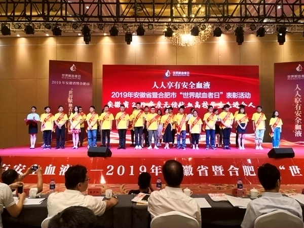 活动现场,安徽省卫生健康委员会、安徽省红十字会等单位联合表彰了获得2016-2017年度全国无偿献血先进市、先进个人代表和安徽省2019年无偿献血公益之星、高校学生无偿献血先进个人和无偿献血先进集体,共有16个市、20个集体和67名个人代表上台领奖。