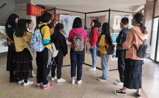 一幅幅精美的作品包围着整个展览大厅,飘逸潇洒的山水画,细腻生动的景物画像,吸引着过往的同学驻足观赏,并发出连连赞叹。参观了此次作品展的师生们纷纷表示,希望学院今后能多开拓、积极开展此类校园文化活动,丰富师生校园文化生活,倡导高雅、健康的文化艺术生活,培养和提高青年学生的文化品味。(稿件来源:学生处)