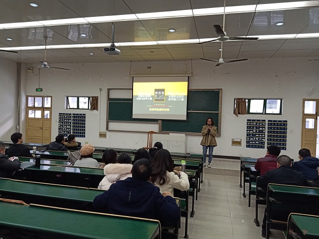 为进一步提高我院教师教学能力,促进教师综合素质、专业化水平和创新能力全面提升,12月13日下午,教务处在教学楼201阶梯教室组织召开学院2019-2020年度教学能力大赛动员交流会,参加比赛的全体教师团队到场参会。会议由教务处杨主任主持。