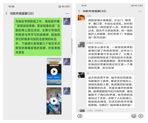 为深入学习宣传贯彻习近平总书记关于疫情防控工作的系列重要讲话和指示批示精神,认真贯彻落实总书记给北京大学援鄂医疗队全体“90后”党员的回信精神,激励引领学院青年团员进一步坚定制度自信,信息工程系18、19级各班级团支部于2020年4月下旬陆续开展“绽放战疫青春 坚定制度自信”线上宣传教育团日活动。