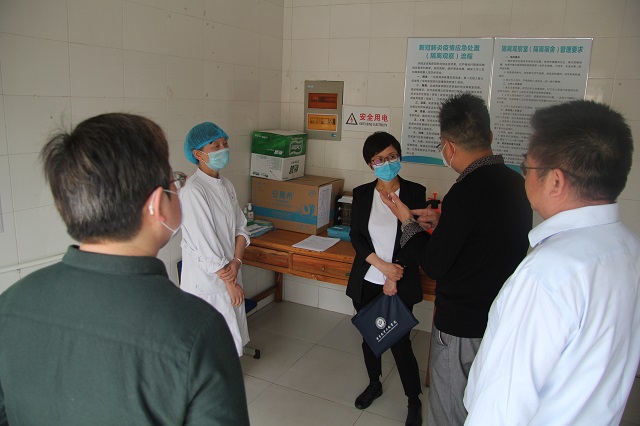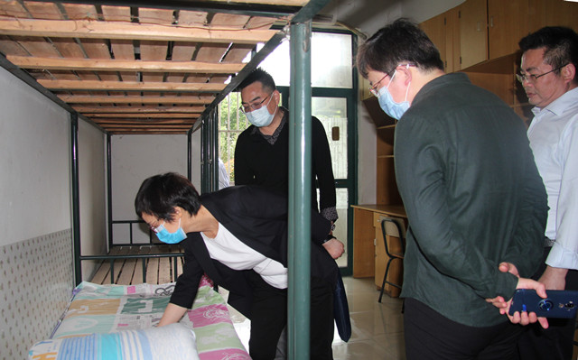 徐静平副厅长一行先后到我院防疫物资存放点、隔离观察室、医务室、学生食堂、女生公寓、发热隔离宿舍等场所进行实地查看,详细了解学院整体疫情防控工作情况和学生返校复学工作安排,并对工作中的重点、难点、关键点进行督查指导。