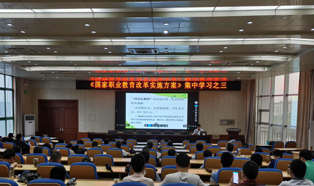 为使广大教师深刻理解和准确把握《国家职业教育改革实施方案》(即“职教20条”)内容要点,充分领会有关职业教育教师队伍建设的重大改革举措,6月5日下午,学院在阶梯教室301举办了“职教20条”专题培训系列讲座第三场。本次讲座由学院党委委员、政治人事部主任范清义主讲,学院全体教师聆听了本次讲座。