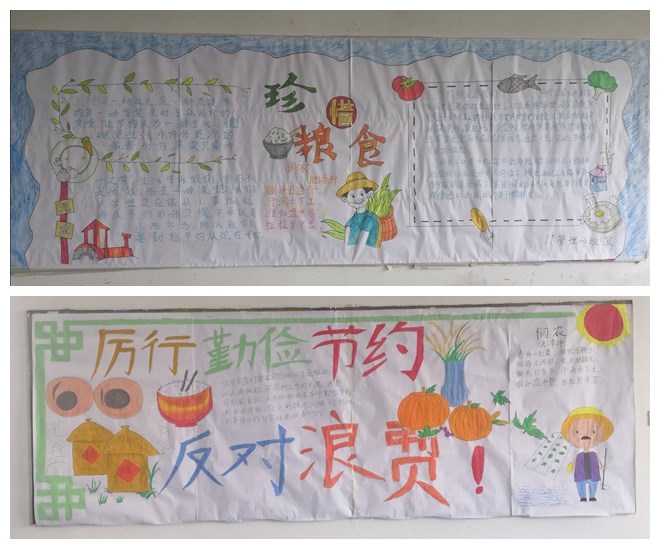 班级板报是厉行节约工作的重要宣传窗口之一。活动中,各个班级积极筹划,认真查阅、收集有关粮食现状的资料,精心选材并设计版面,绘制出一幅幅主题鲜明、图文并
