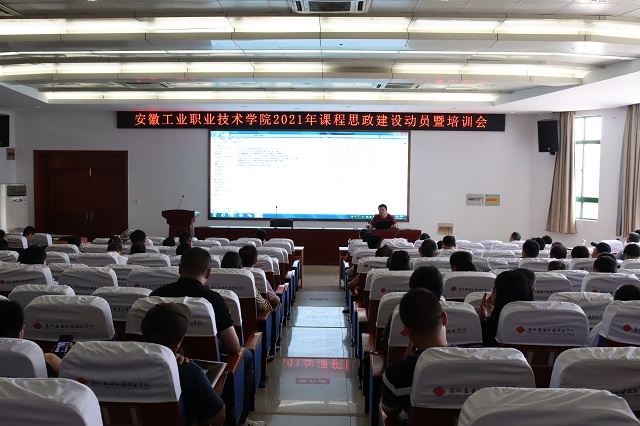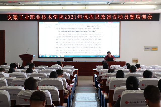 会上,教务处负责人解读了《高等学校课程思政建设指导纲要》和《安徽工业职业技术学院课程思政建设实施方案》,阐明了针对不同类型的课程如何融入思想政治教育,并就我院2021-2022年课程思政建设规划做了介绍。