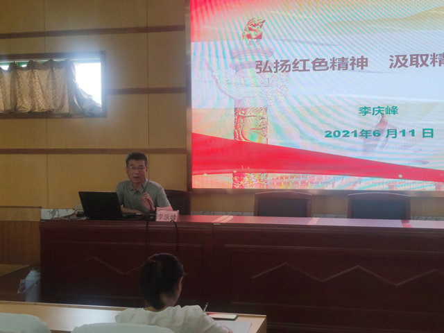 为了使全院党员领导干部能更加深入地了解我们党,从党的百年历史中汲取继续前进的智慧和力量,深入学习习近平新时代中国特色社会主义思想,我院开展系列党史宣讲活动。近日,学院组织人事处组织全院2021年新发展学生党员和拟发展对象在教学楼阶梯302教室召开党史学习教育宣讲活动。学院党委书记李庆峰以《弘扬红色精神,汲取精神力量》为题,为与会同志讲授党史课。