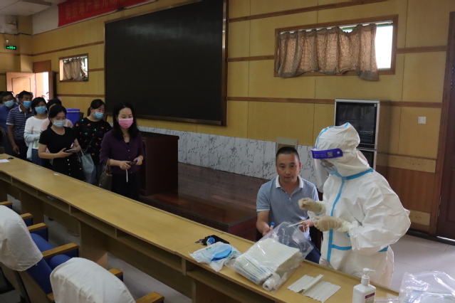 根据省教育厅疫情防控工作要求,为切实做好我院2021年秋季开学新冠肺炎疫情防控工作,全面筑牢校园疫情防控防线,确保师生生命安全和身体健康,按照“应检尽检 不落一人”的要求,8月25-26日,学院在天井湖校区教学楼对返校全体教职员工(含外聘人员)开展全员核酸检测工作。