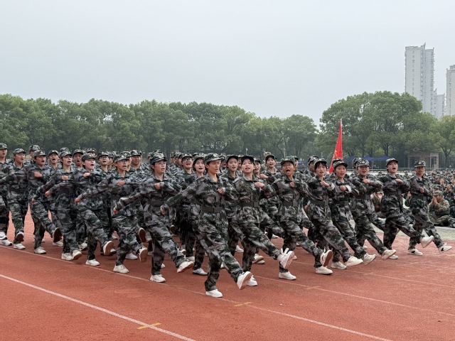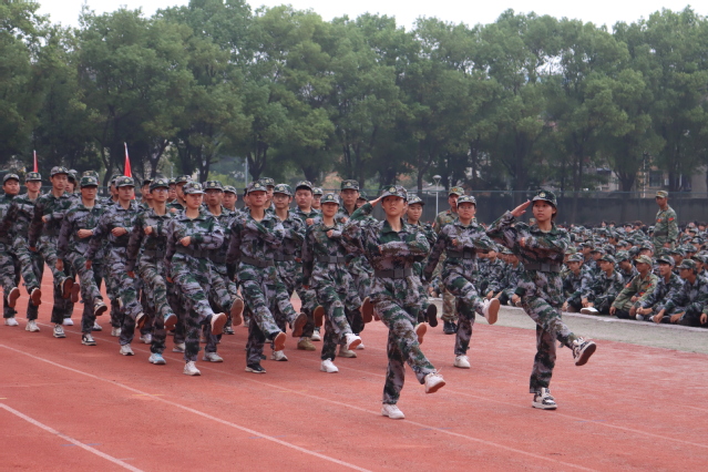 分列式环节,在军旗的带领下,2600余名新生组成的33个方阵步伐铿锵、口号嘹亮、气势如虹,依次通过主席台接受检阅。新生们以挺拔的军姿、整齐的动作和昂扬的斗志,完美展示了为期20天的军事训练成果,诠释了新时代学子朝气蓬勃、奋发向上的精神风貌。