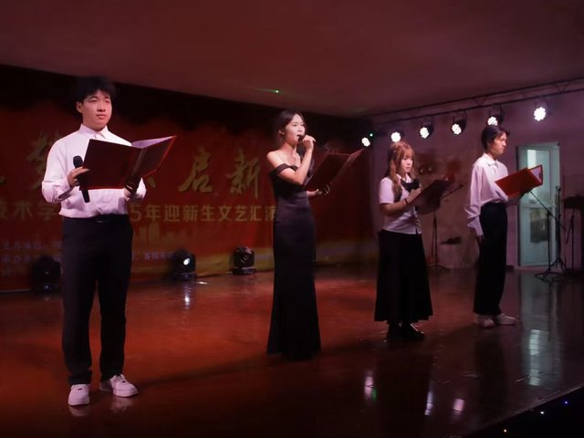 青曦话剧社、太阳帆文学社和海子诗词朗诵社的相声,以及机电工程学院的吉他弹唱《玫瑰》,为汇演增添了别样魅力。最后,微风合唱团以一曲《我们的明天》大合唱收尾,歌声悠扬,寄托着对新生未来大学生活的美好期许。