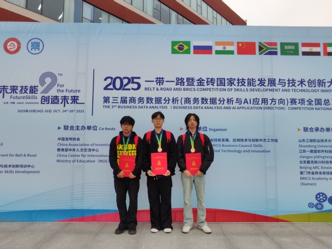 10月24日至26日,2025一带一路暨金砖国家技能发展与技术创新大赛第三届商务数据分析(商务数据分析与AI应用方向)赛项全国总决赛在山东工程职业技术大学圆满落幕。来自我院管理工程系学生王小赛、齐汉强、赵文博组成的参赛团队,荣获高职组全国总决赛三等奖。