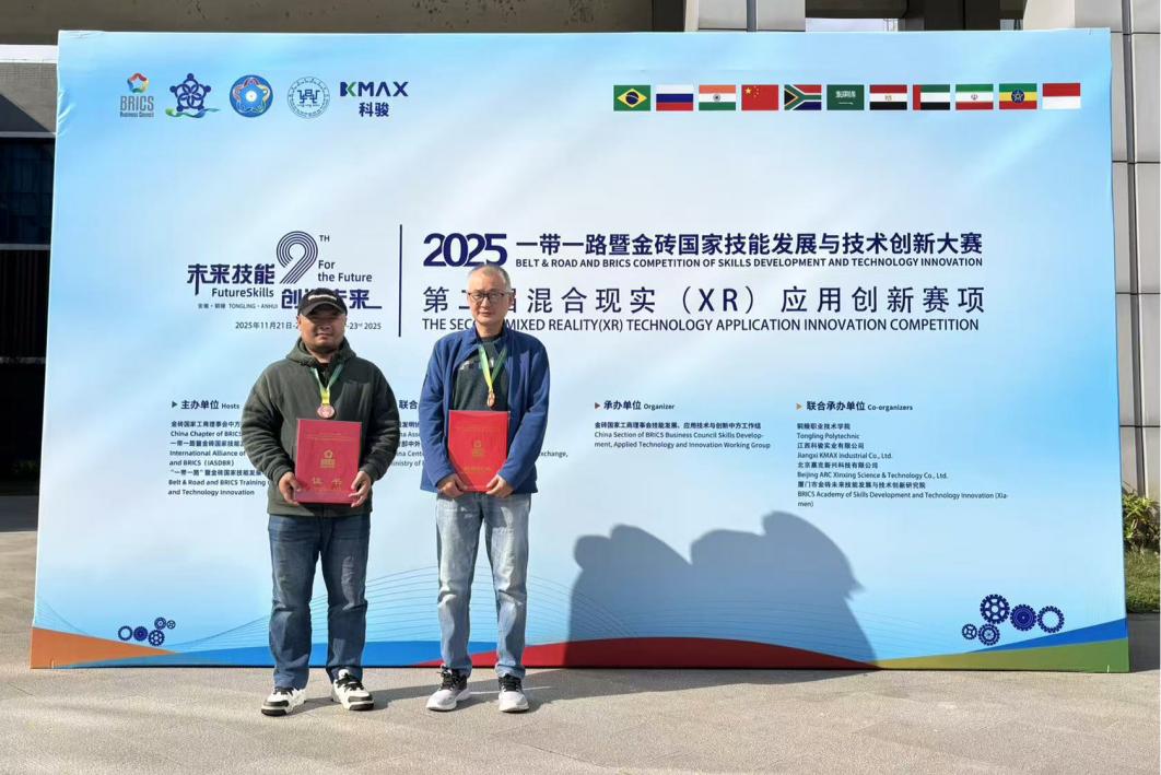 11月23日,2025一带一路暨金砖国家技能发展与技术创新大赛——第二届混合现实(XR)应用创新赛项圆满落幕。我院信息工程系教师刘东亮、田鉴凭借扎实的专业功底与出色的团队协作,在全国众多高校参赛队伍中脱颖而出,荣获大赛三等奖,充分展示了我院教师在虚拟现实领域的教学水平与技术应用能力。