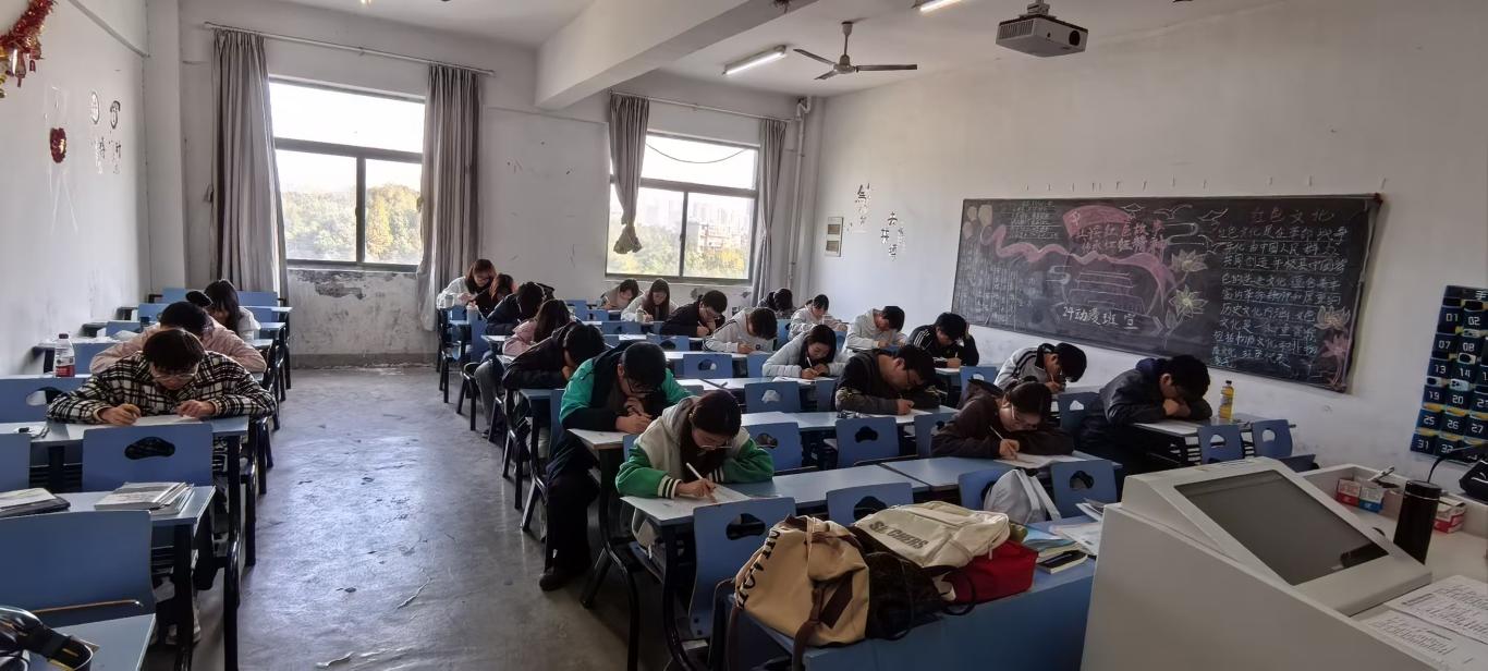 考试过程中,考场秩序井然,考风严谨端正,展现出良好的教学管理与学习风貌。
