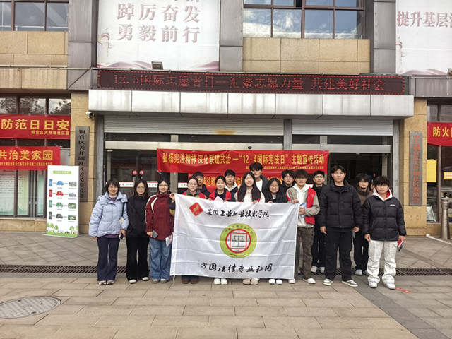 12月4日“国家宪法日”当天,铜陵市财政局、天井湖社区联合学院方圆法律社在社区广场开展“弘扬宪法精神 深化联建共治”主题宣传活动。此次活动以“专业实践+政社校联动”为载体,不仅将宪法知识与民生政策送到居民身边,更让社团学子在服务社会中锤炼专业技能、厚植责任担当,彰显了我院社团实践育人的鲜明导向。