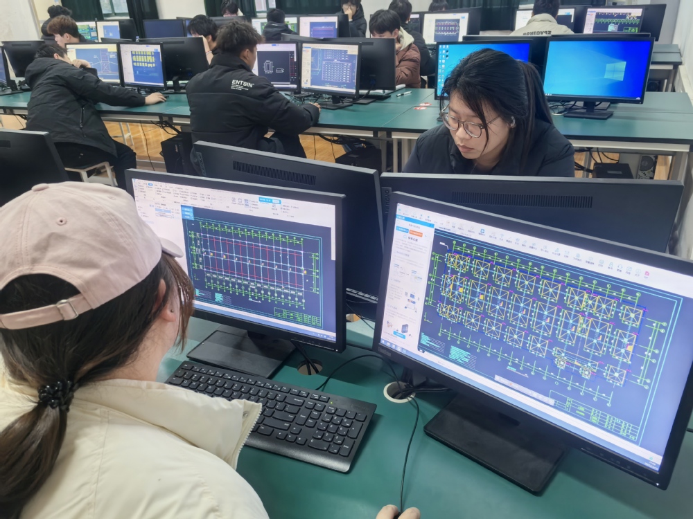 在竞赛过程中,同学们全神贯注,面对复杂的图纸挑战,充分展现了他们对专业知识的深入理解、扎实的专业基础以及出色的心理素质。