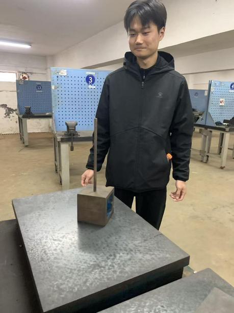 竞赛紧扣钳工核心技能,要求参赛学生在细圆钢上加工垂直面。比赛现场,各位选手沉着应战,严格操作流程,展现出严谨的态度与良好的职业素养。