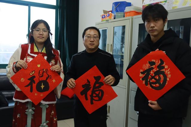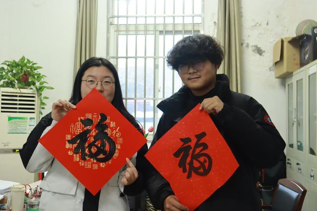 同学们满怀热情,以笔为媒,以墨传情,在一张张鲜艳的红纸上,他们笔走龙蛇,力透纸背,一个个“福”字跃然其上,不仅展现了同学们深厚的书法功底,更让喜庆的红纸与浓郁的墨香交织出浓浓的年味,倾注了对老师们的深切感激与新春的美好期许。