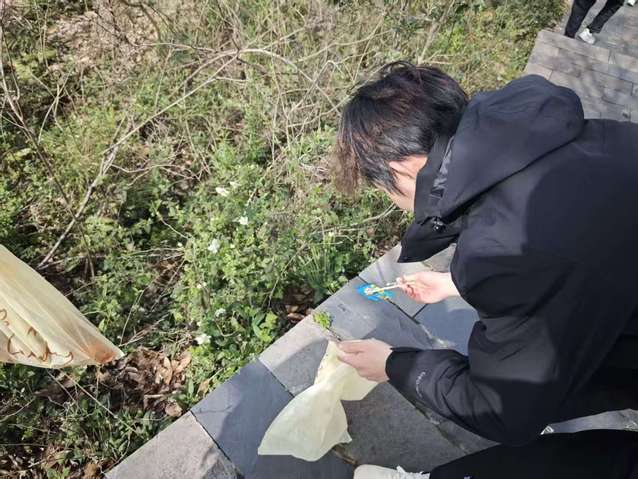 登山途中,同学们目光如炬,一边欣赏沿途的秀丽风光,一边细致地搜寻着被丢弃在步道旁、树丛中的塑料瓶、食品包装袋、纸巾等垃圾,将一个个“不和谐”的污染物拾起,装入随身的垃圾袋中。欢声笑语与辛勤劳作交织在一起,形成了一道独特的风景线。原本略显疲惫的登山过程,因这份共同的使命而变得充满意义与活力。