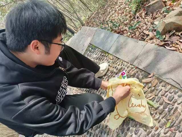 经过1小时的攀登与清理,队伍成功抵达山顶。俯瞰山下美景,再看着手中满载的“战利品”,每位成员的脸上都洋溢着自豪与满足的笑容。大家将收集到的垃圾进行了集中分类,并带至山下指定投放点,确保了活动的圆满收尾。