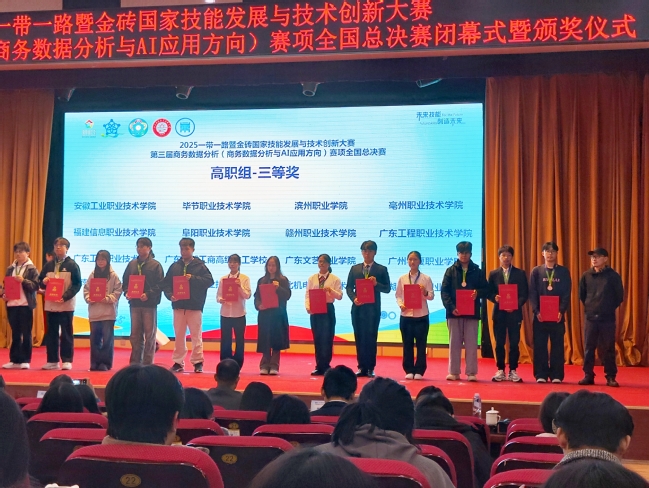 10月24日至26日,2025一带一路暨金砖国家技能发展与技术创新大赛第三届商务数据分析(商务数据分析与AI应用方向)赛项全国总决赛在山东工程职业技术大学圆满落幕。我院由管理工程系学生王小赛、齐汉强、赵文博组成的参赛团队,荣获全国总决赛三等奖。
