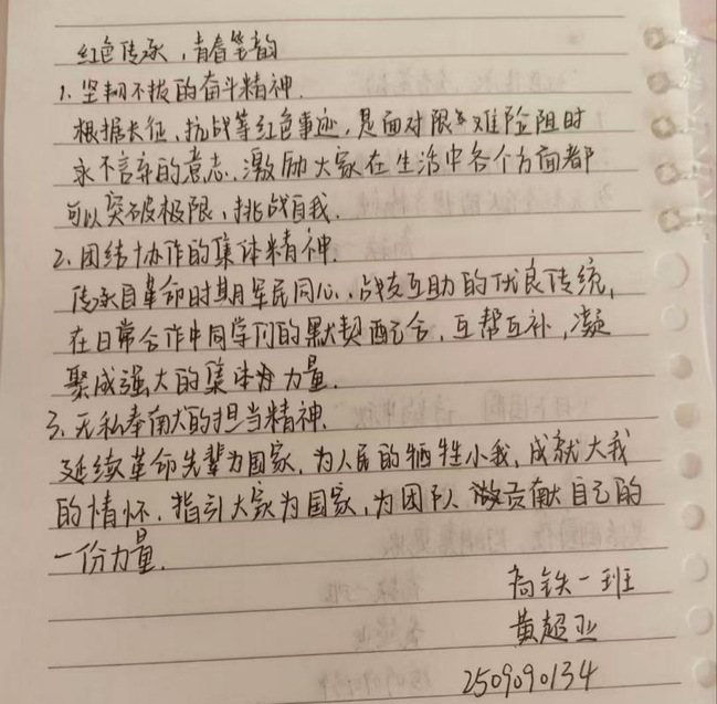 以“青春笔韵”为载体,鼓励同学们用文字的形式抒发对红色精神的理解与感悟。大量优秀作品不仅展现了当代学生的文学素养与艺术才华,更将抽象的红色精神转化为具象的情感表达,实现了红色文化在青年群体中的有效传递与创新表达。深化红色认知,筑牢思想根基,活动通过红色经典诵读、革命故事分享等环节,让同学们系统回顾了井冈山精神、长征精神等伟大红色精神的核心内涵,从历史中汲取了“坚定信念、艰苦奋斗”的精神力量,强化了青年一代的历史使命感与民族认同感。