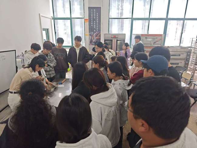在实践环节中,同学们纷纷动手尝试,将理论知识转化为实际操作。实训室内很快弥漫起黄油的浓郁香气,伴随着欢声笑语,一块块造型各异、充满创意的曲奇面团在同学们的手中诞生。尽管有些同学是第一次接触烘焙,在挤花造型时略显生涩,但在协会成员的耐心指导下,很快掌握了技巧,制作愈发娴熟。经过精心烘烤,金黄酥脆的曲奇陆续出炉。活动最后进入了作品展示与评比环节,同学们互相欣赏彼此的作品,交流制作心得。