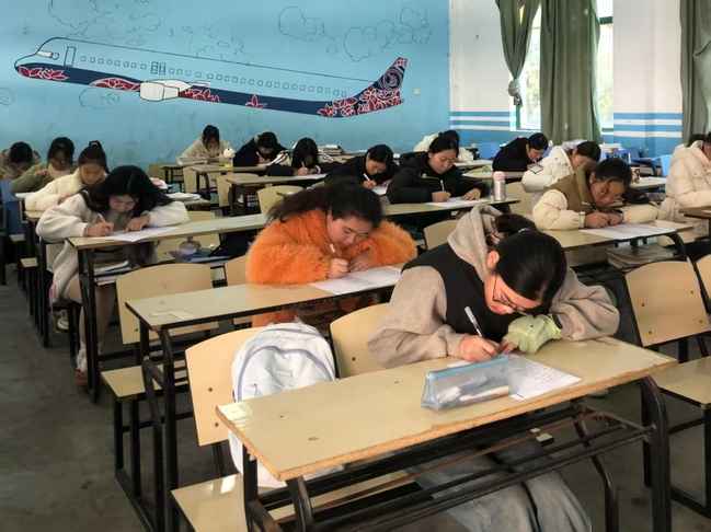活动现场氛围热烈而专注,同学们手持答题卷全神贯注投入作答。明亮的教室中,笔尖划过纸张的沙沙声此起彼伏,大家时而凝神思索梳理解题思路,时而细致核对题干细节,将专业知识灵活运用到趣味题目中,尽显青春学子的求知热情与严谨态度。