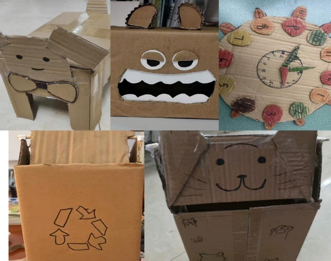 造型生动的纸壳小动物。创意纸壳钟表等。一件件作品不仅展现了同学们的动手能力,更将绿色物流的理念融入其中,让原本即将被丢弃的纸箱变成了兼具实用性与创意性的“宝贝”。