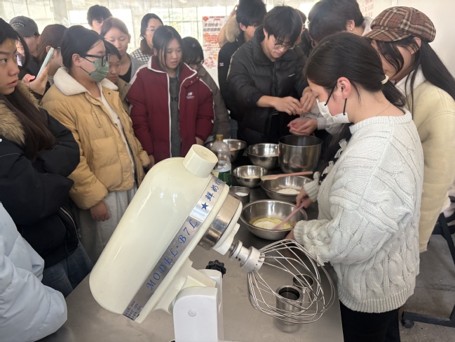 活动过程中,主持人首先详细演示了肉松小贝的制作步骤,包括面糊调制、蛋糕烘烤、酱料搭配及肉松裹制等关键环节。随后,社员们亲自动手操作,在实践中交流技巧、分享心得。最后,大家将自己的作品进行展示与评比,共同体验烘焙的乐趣与成就感。
