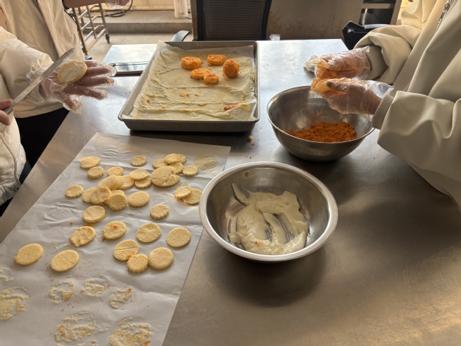 2025年12月5日下午,烹饪协会在烹饪实训室顺利开展了“肉松小贝制作活动”。活动以“指尖揉香,小贝藏甜”为主题,吸引了众多社员踊跃参与,现场气氛温馨热烈。