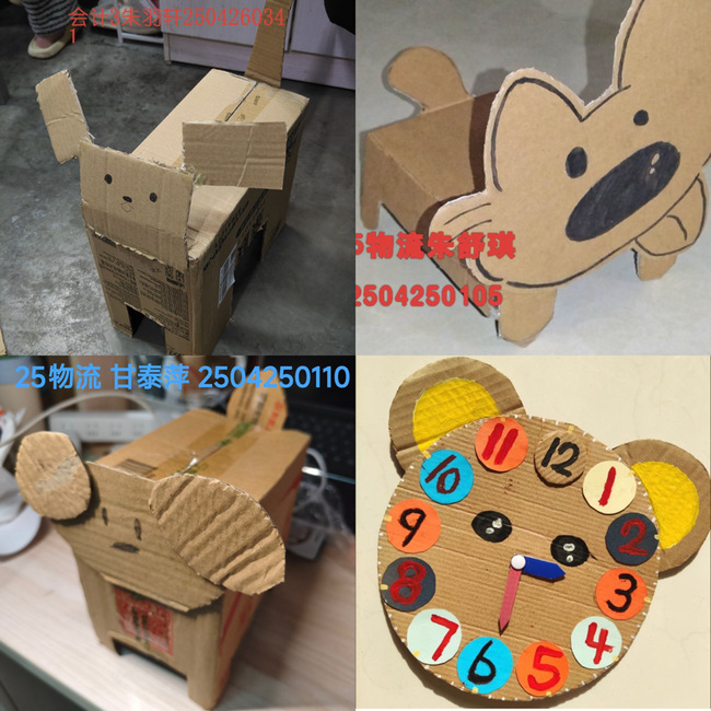 活动中,同学们化身“绿色改造家”,利用日常废弃的快递纸盒、包装袋,发挥巧思与创意,打造出一件件兼具实用与美观的手工作品。有的同学将纸盒剪裁重组,制作成精美的收纳盒、笔筒,既实用又环保;有的同学巧妙运用纸板的可塑性,拼接出造型别致的卡通摆件和装饰画,充满童趣与设计感;还有的同学结合环保理念,创作出象征循环再生的立体艺术装置,传递出“废物不废、创意再生”的绿色理念。