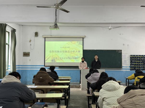 2025年12月19日,由管理工程系正信会计社团举办的“业财税融合投融资分析大赛”,在教学楼103,101教室隆重举行,来自正信会计社团的学生参加本次比赛,由会计教研室汪平和李兴海担任本次大赛评委。
