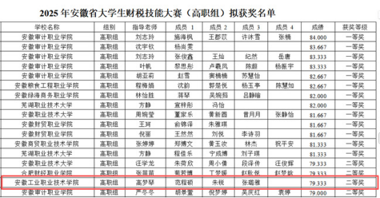 1月5日,由安徽省教育厅主办、安徽财经大学承办的2025年安徽省大学生财税技能大赛评审结果正式公布。我院管理工程系学生团队凭借扎实的专业功底和出色的案例分析能力,在激烈角逐中斩获二等奖。