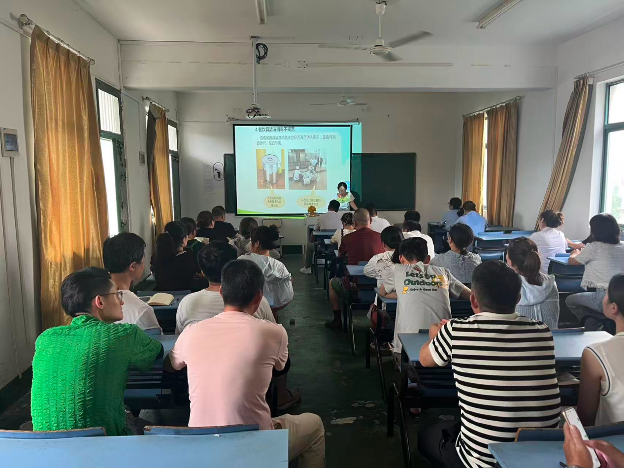 为持续提升校园餐饮服务质量,学院于8月29日下午组织食堂从业人员开展专项培训。此次培训涵盖食品安全全流程管理,重点包括:预防食品安全所存在的问题,食堂食品安全管理相关要求,自查制度,人员卫生管理制度,设备设施标签标识,餐饮具清洗消毒问题,食品加工制作过程储藏问题,采购凭证及台账登记规范,进货查验检查要点,食品留样的规范等。