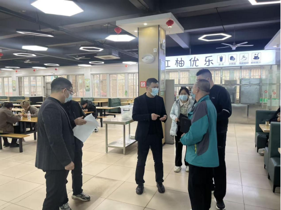 与会人员开展全覆盖实地巡查,依次深入一、二、三食堂,对食材采购储存、加工制作、餐具消毒、菜品留样等关键环节进行细致检查。每到一处,大家详细询问日常操作流程,重点核查“日管控、周排查、月调度”工作记录落实情况,确保隐患排查无死角。