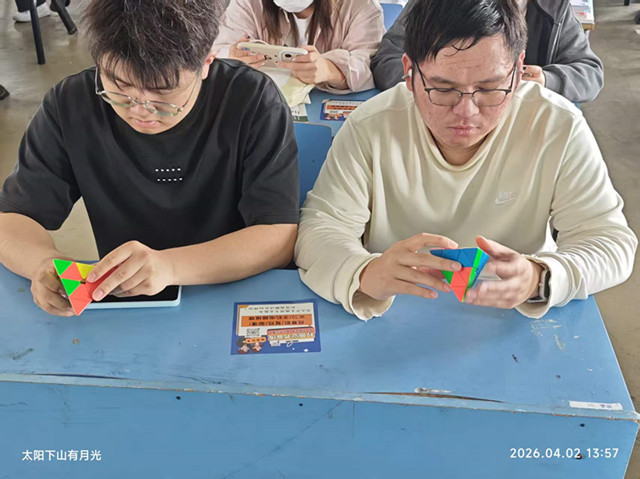 为了激发出同学们对数学的热情及学习兴趣,在2026年4月2日14:00,在天井湖校区实训楼北501教室,应用数学社团成功举办“金字塔魔方”竞赛活动。本次活动由社团指导老师指导,社长解佳艺,副社张伟耀共同组织,参与本次活动的成员一共有43位同学。