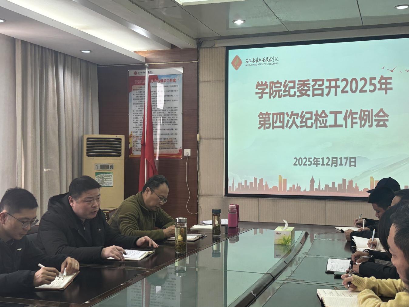 12月17日,学院纪委在第一行政楼四楼会议室召开2025年学院第四次纪检工作例会,总结前一阶段党风廉政建设工作情况,部署下一阶段党风廉政建设相关工作,学院纪委书记罗海峰同志出席会议并讲话。