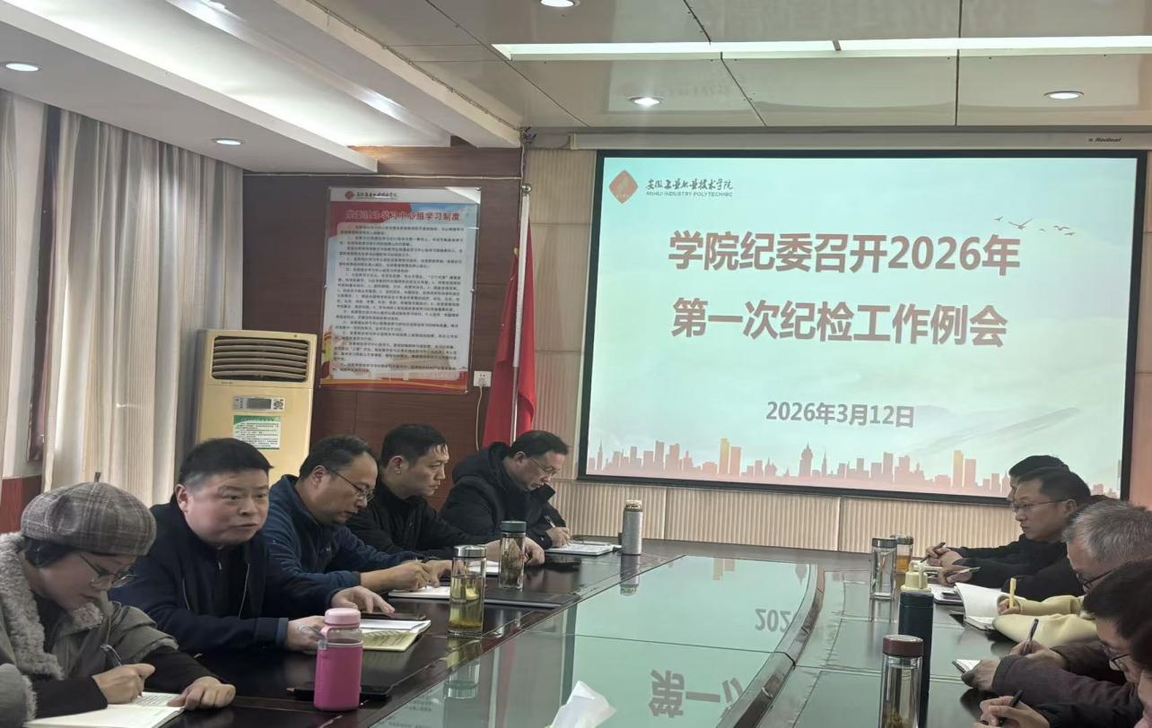 3月12日,学院纪委在第一行政楼四楼会议室召开2026年第一次纪检工作例会。学院纪委书记罗海峰同志出席会议并讲话,学院纪委委员、各党支部书记及纪检委员参加会议。会议由纪检监察室主任刘文欢主持。