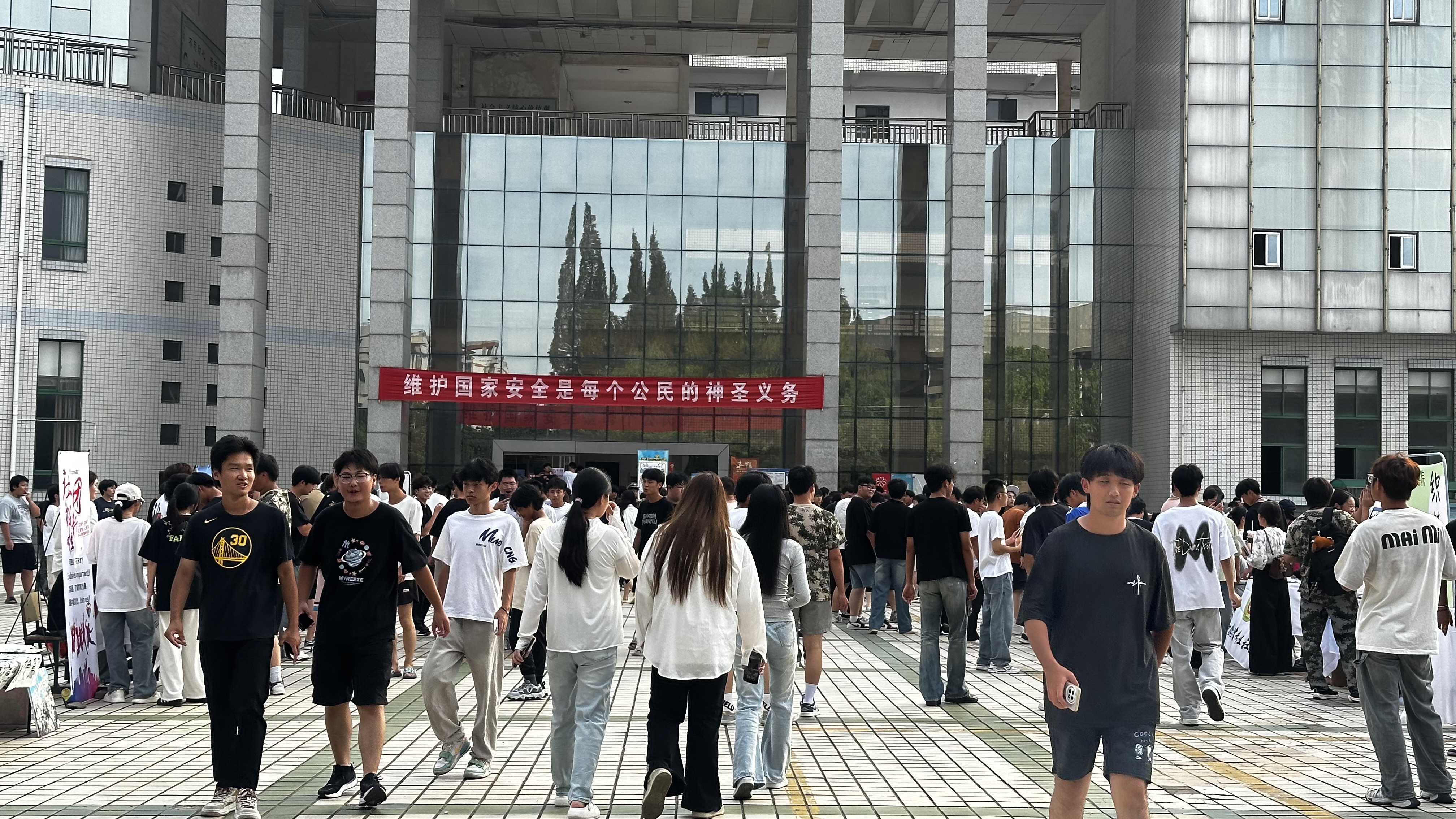 下午的阳光正好,各社团负责人早早来到现场,布置展位、悬挂社旗、摆放宣传材料,忙碌中洋溢着青春的朝气。纳新活动于下午4点正式启动,广场上瞬间人潮涌动。身着军训服的2025级新生穿梭于各社团展位前,仔细询问社团特色、活动内容及参与方式,展现出对大学生活的无限憧憬。