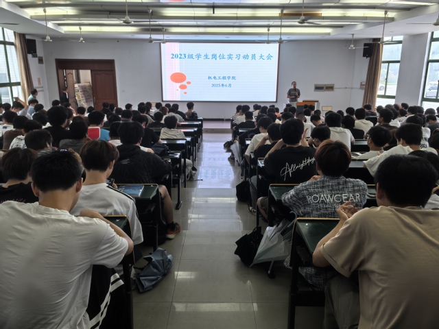 2025年6月23日下午,机电工程学院2023级711名学生在阶梯101教室分三场参加了岗位实习动员大会。此次大会旨在帮助学生明确实习目标、了解实习要求、掌握实习平台使用方法,并强化实习期间的安全意识。大会由教学负责人和学生口负责人分别就实习业务内容和安全事项进行了详细讲解。