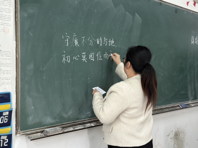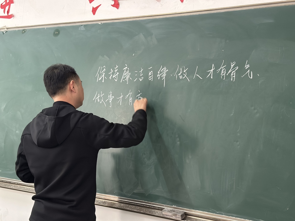 比赛现场,九位参赛教师神情专注,手持粉笔,在黑板上挥洒自如。“身正行端”“廉洁自律”“一分一厘都不能乱花”等一句句廉洁从教的格言警句,在老师们的笔下或苍劲有力,或清秀工整,或行云流水,展现出扎实的教学基本功和良好的职业素养。现场观摩的教师们纷纷表示,这样的活动既是对教学基本功的检验,更是一次深刻的师德师风教育。