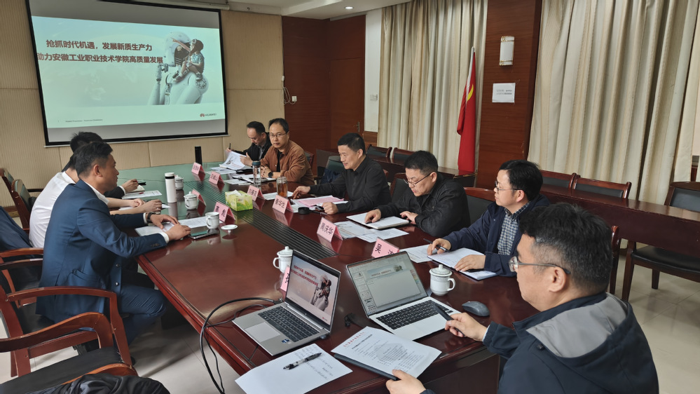 2026年4月17日下午,我院与华为技术有限公司以“深化校企合作,共创智能未来”为主题的交流会在学院第一行政楼一楼会议室成功举办。双方领导与专家齐聚一堂,围绕人工智能、智慧教育等前沿领域展开了富有建设性的深度对话,共同探讨产学研协同创新,旨在为区域数字经济发展和高技能人才培养注入强劲动力。