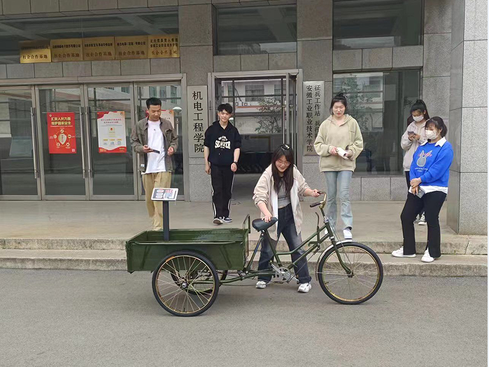 人力三轮车零部件到货后,社团成员们互相协助,一个零件一个零件地进行组装,看着从一堆零件到一个三轮车完美蜕变,社员们都激动万分。一方面,是因为一辆崭新的人力三轮车诞生在自己的手中;另一方面,是以后开展校内回收时更加便捷了,尤其是冬天天气冷,有了这个三轮车既可以通过踩车运动取暖,又可以减少来回运送的次数,节省时间。