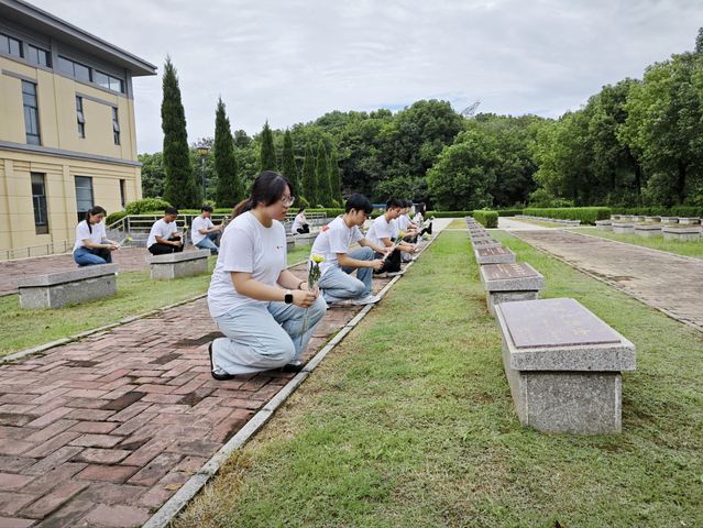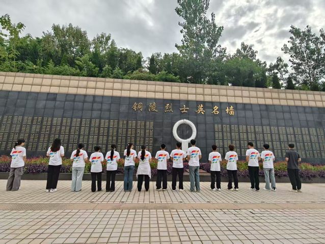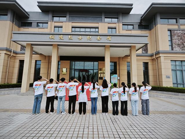 8月31日,实践团来到笠帽山革命烈士纪念馆开展红色教育。在讲解员的引导下,队员们驻足凝视泛黄的历史照片、锈迹斑斑的战斗武器,通过“铜陵解放战役”等沉浸式场景,重温革命先辈浴血奋战的峥嵘岁月。在烈士纪念碑前,全体成员肃立默哀、敬献鲜花,面向团旗重温入团誓词。“作为新时代共青团员,我们要把红色基因转化为奋进动力。”实践团团员们在发言中表示。