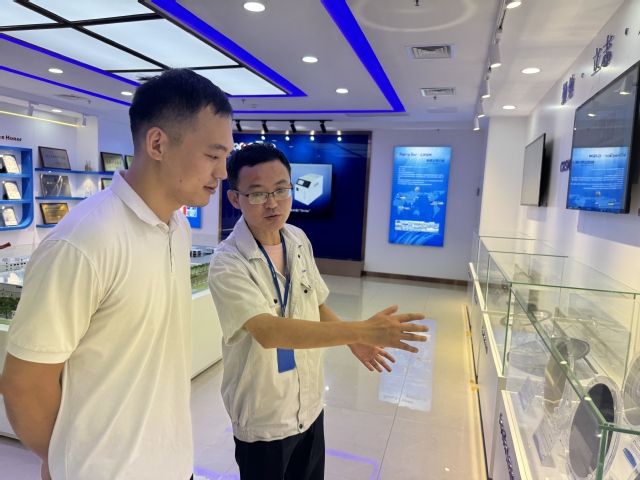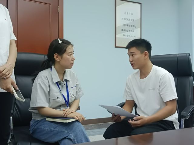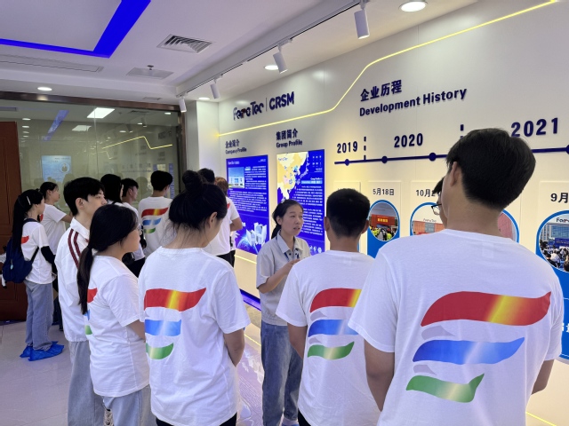 8月28日,实践团首站走进安徽富乐德科技发展股份有限公司。在座谈会上,企业负责人详细介绍了半导体设备精密洗净服务领域的发展前景,同学们围绕“专业能力与岗位需求”“实习就业通道”等话题踊跃提问。企业人力资源总监表示:“同学们的问题既有专业深度又贴近实际需求,期待未来与高校建立常态化人才共育机制。”随后,实践团参观了智能化生产车间和科技展厅,近距离感受科技创新赋能产业升级的生动实践。队员们感慨道:“从课本理论到生产一线,我深刻认识到技能报国的广阔舞台。”