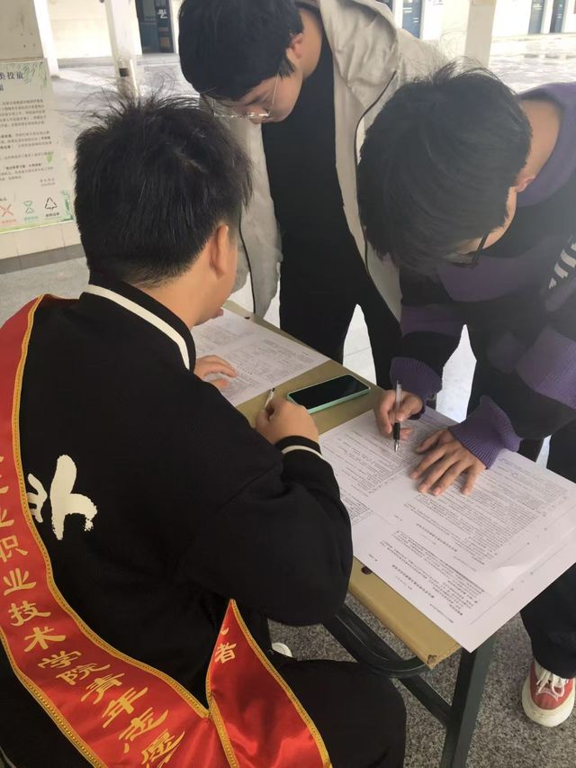 活动现场,教学楼门口的献血车旁秩序井然:青年志愿者们佩戴绶带,手持“为爱献血”“我为祖国献热血”等主题手牌,协助医护人员引导同学们完成信息登记、健康检测等环节;医护人员严格遵循规范流程,为符合献血条件的学生进行采血,并同步讲解献血后的护理知识。现场学子们积极响应,从信息核验到完成采血,全程配合有序,以实际行动践行青年担当。