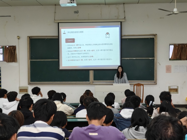 为提升学生的逻辑思维与语言表达能力,培养理性思考与团队合作精神,近日,演讲与辩论协会在指导教师的指导下,在阶梯教室202举办了以“语言与思维的双重锻炼”为主题的辩论赛培训活动。本次活动吸引了众多热爱辩论、渴望提升自我的学生积极参与。