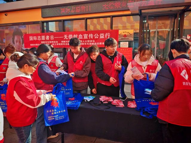 11月30日国际志愿者日来临之际,学院团委积极响应公益号召,组织10余名志愿者参与铜陵市献血协会在万达广场献血屋举办的“国际志愿者日——无偿献血公益行”宣传活动。