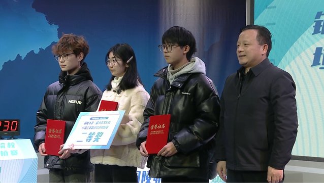 自大赛启动以来,我院高度重视、积极响应,将其作为深化生态文明教育的重要载体。在院领导统筹部署下,由党委副书记黄仕银亲自带队,院团委联合各院系通力协作,从数百名学生中遴选出万绮、戴幸福、王健洋三位优秀选手组成参赛队伍。备赛期间,团队系统学习垃圾分类知识,结合模拟演练优化答题策略,最终以优异成绩闯入决赛,展现了安工学子扎实的环保素养与昂扬的精神风貌。