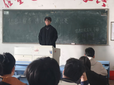 为传承弘扬我国优秀传统文化,丰富校园文化生活,提升学生人文素养与语言表达能力,信息工程系于12月3日在图文楼509教室举办“传承经典,诗韵青春”诗词朗诵比赛。活动旨在让学生感受传统文化魅力,增强文化自信,激发对文学艺术的热爱。