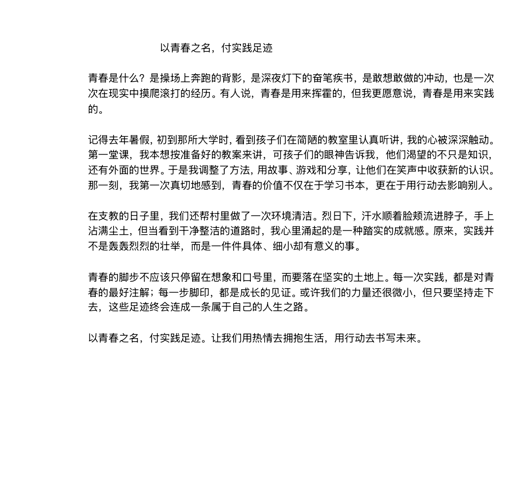 为深入学习贯彻习近平新时代中国特色社会主义思想,引导青年学生在实践中成长,10月15日,信息工程系近期举办“以青春之名,赴实践之约”主题征文活动。活动启动后,系内各年级学生踊跃参与,围绕社会实践、志愿服务、专业认知等维度,记录实践见闻与感悟,展现新时代青年风采。此次活动收到百余篇参赛作品,评审团依主题契合度、内容原创性、语言流畅性等标准进行初评与复评,最终评出一、二、三等奖及优秀奖若干。这些作品视角独特、情感真挚,是个人实践经历的写照,也是新时代青年诠释青春意义的注脚。